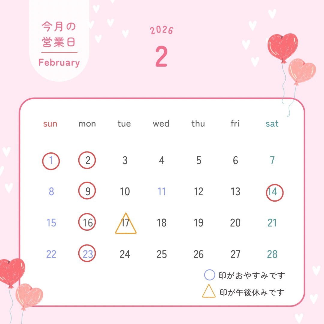 2026年2月の営業予定のお知らせです。