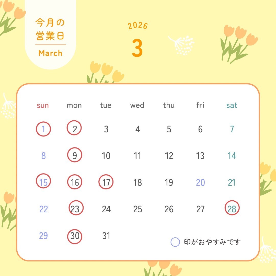 2026年3月の営業予定のお知らせです。